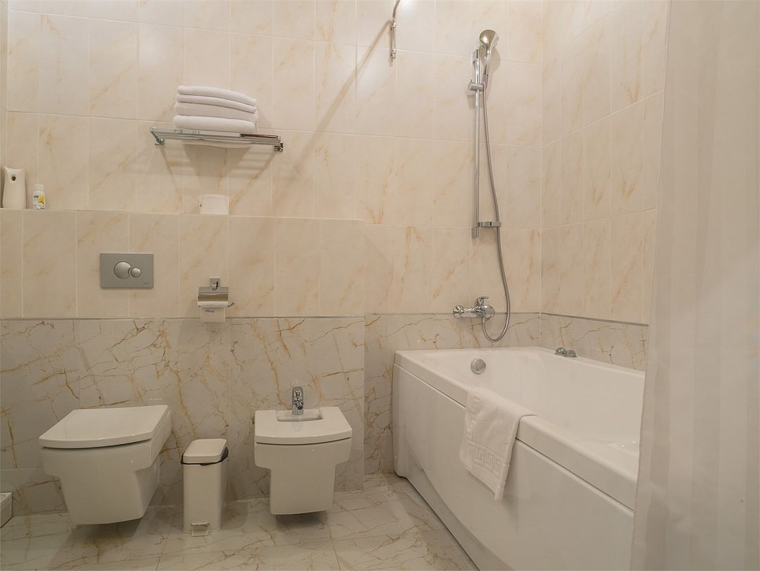 Трехкомнатный номер с двумя спальнями и гостиной, тремя санузлами, в которых ванны и душевые кабинки. Просторная и уютная гостиная, где можно провести время с друзьями, семьей или провести деловые переговоры. Номер рассчитан на четырехместное размещение. Возможно бесплатное размещение ребенка до трех лет на одной кровати с родителями или с предоставлением детской кроватки. Диван в гостиной может использоваться в качестве дополнительного места.Услуги и удобства