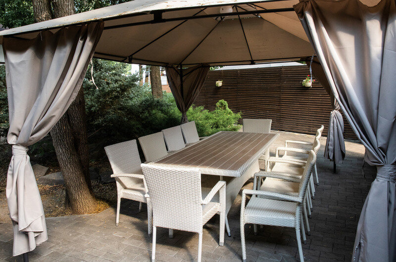 Читать полностьюЕсли вы берете в аренду беседку, то к ней прилагается список услуг, включенных в стоимость. Вы можете пользоваться мангалами, 2-мя бассейнами и спортивными площадками. В стоимость аренды входят холодильник, сервировка нашей посудой, обслуживание. Можно привозить с собой неограниченное количество закусок и напитков.