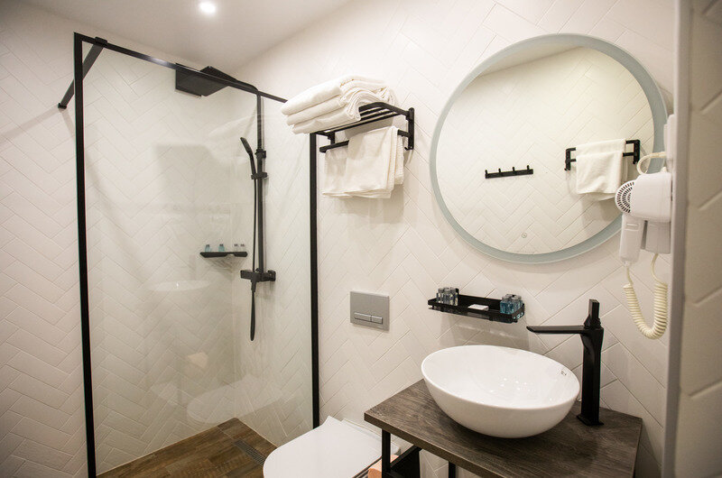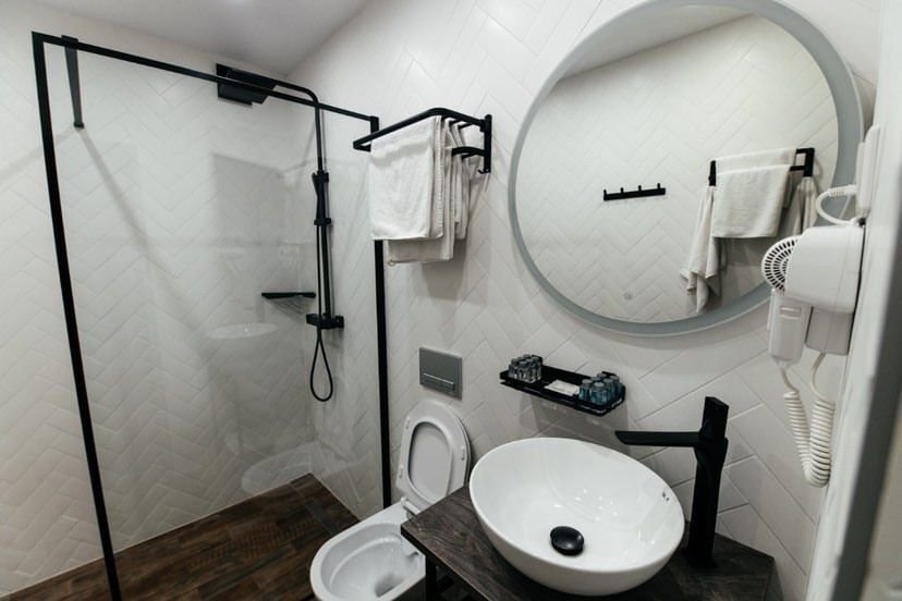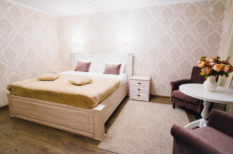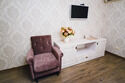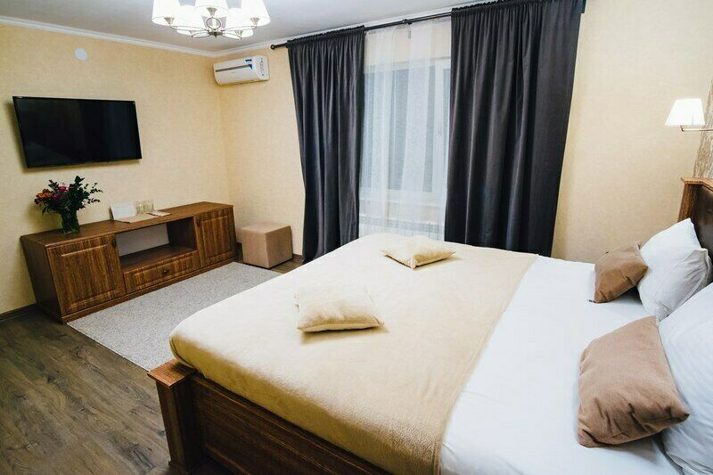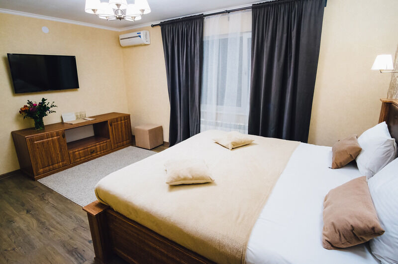 Все номера отеля на левом берегу оборудованы двуспальной кроватью, гардеробом, столиком, санузлом, холодильником, плоским телевизором с кабельным телевидением, сплит-системой. Можно оборудовать дополнительное спальное место, для маленького ребенка предоставляется кроватка.