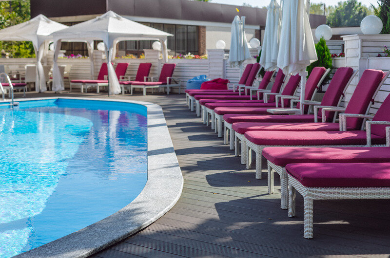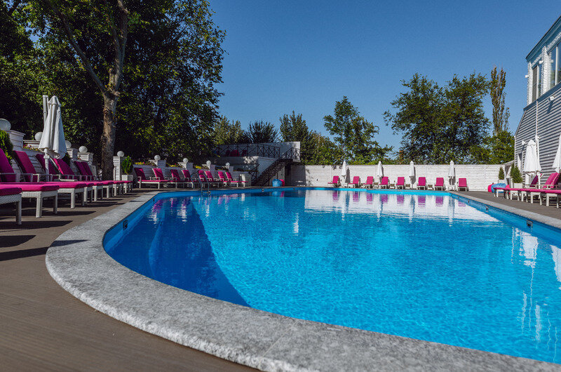Тип бассейна: открытый бассейнВода в бассейне: подогреваемый бассейнРядом с бассейном: душ, шезлонги, зонтики, бар у бассейнаТемпература в бассейне: 27 °CГлубина: 160 смГости, отдыхающие в отеле или коттеджах могут посещать аква-зону совершенно бесплатно. Благодаря подогреву воды купаться в бассейнах можно начиная с апреля и до конца октября.