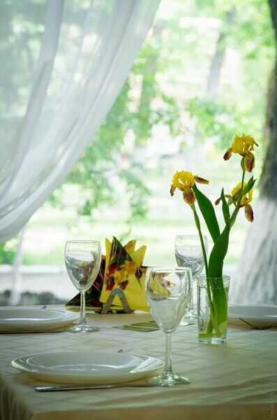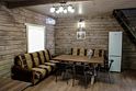 На территории оборудован большой банкетный зал с панорамными окнами, кухней и танцполом вместимостью до 70 человек.
