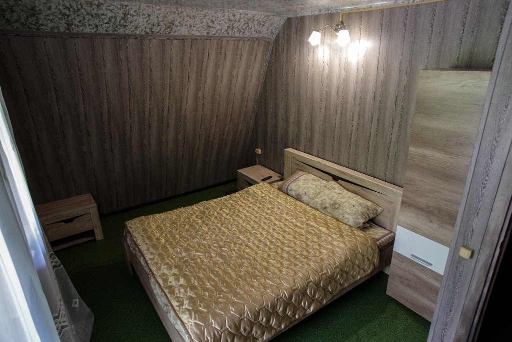 В номере: одна двуспальная кровать. Санузел на этаже, есть кухня на 1 этаже.