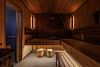 В комплекте — холодный бассейн-купель, веранда с мягкой мебелью, уличный стол на четырнадцать человек, лежаки и зонты, кухня, ТВ, а также тапочки, простыни, шапки, ведро для запарки, питьевая вода, чай и травы.
