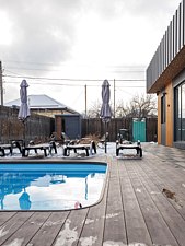Тип бассейна: открытый бассейнВода в бассейне: подогреваемый бассейнРядом с бассейном: шезлонги, зонтикиТемпература в бассейне: 30 °CРазмеры: 4.5 x 3 мПлощадь: 13 м²Период работы: от мая до сентября, летний сезонСтоимость