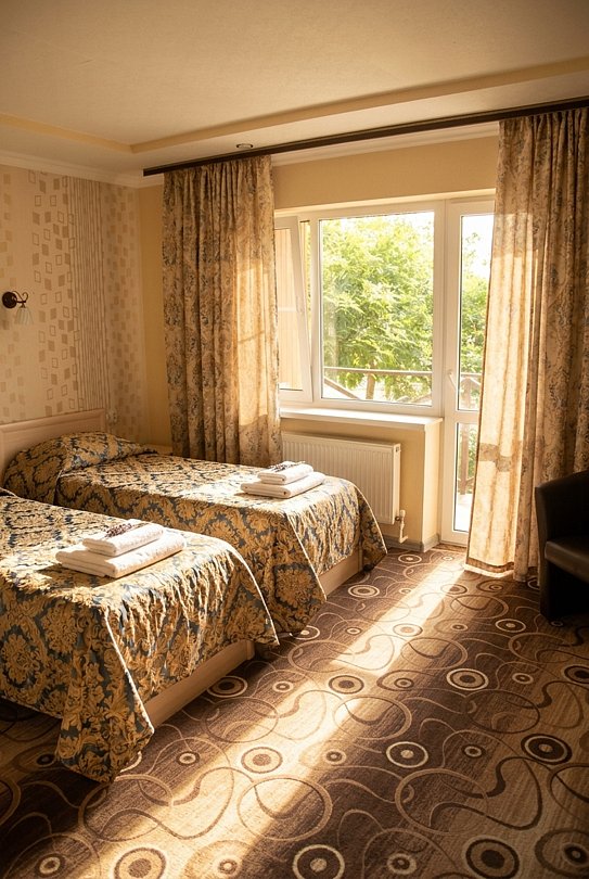 Приглашаем вас остановиться в «Улучшенном» номере, где всё продумано для вашего комфорта. В номере установлены две односпальные кровати и раскладной двухместный диван — здесь с удобством разместятся до четырёх гостей.