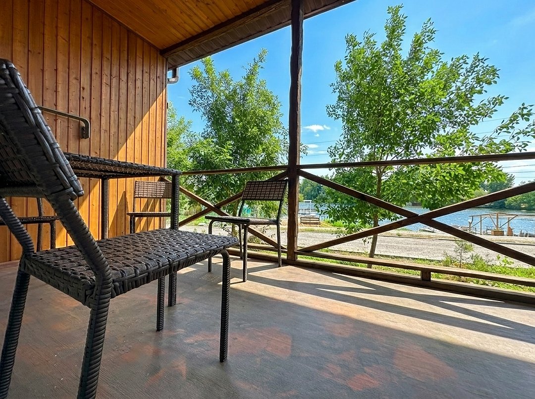 Большая терраса с живописным видом, все удобства и множество развлечений: пляж, мангальные зоны, рыбалка, беседки, мини‑зоопарк. Разрешено размещение с питомцами (за доплату). Бесплатная охраняемая парковка.