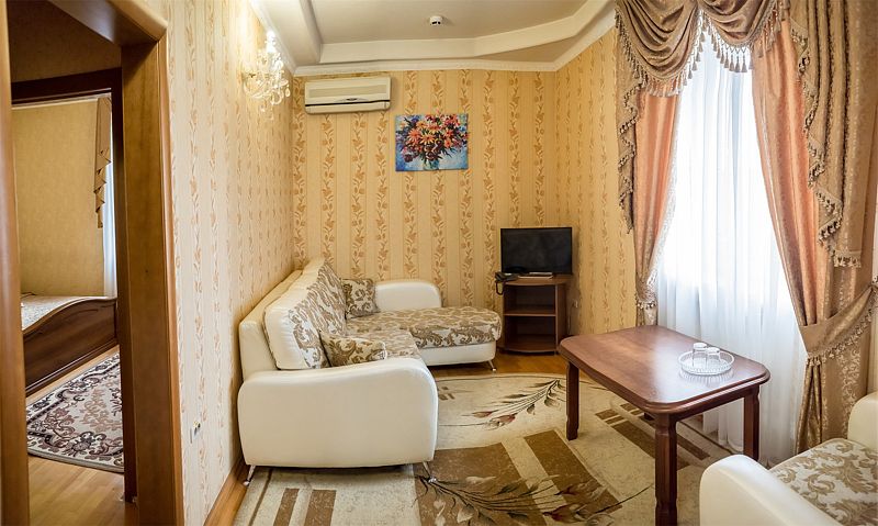 Путешествие с семьейОчень понравилось!Мы приехали из Балашихи, Московская область. Были в конце июня вдвоём с сыном 12 лет, жили в 3 - х местном номере. В номере телевизор, кондиционер, холодильник, эл. чайник, матрасы на кроватях новые, ортопедические. Большое спасибо администратору Татьяне, горничной Ларисе. Уборка в номере проводилась постоянно, смена белья и полотенец во время. Кондиционер работал отлично, внизу, в столовой разнообразное и вкусное меню, низкие цены.Море, кафе, парк все в шаговой доступности. Очень всем советую, в следующем году собираемся только в эту гостиницу.