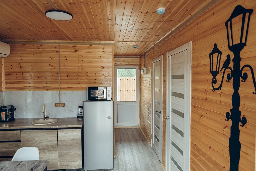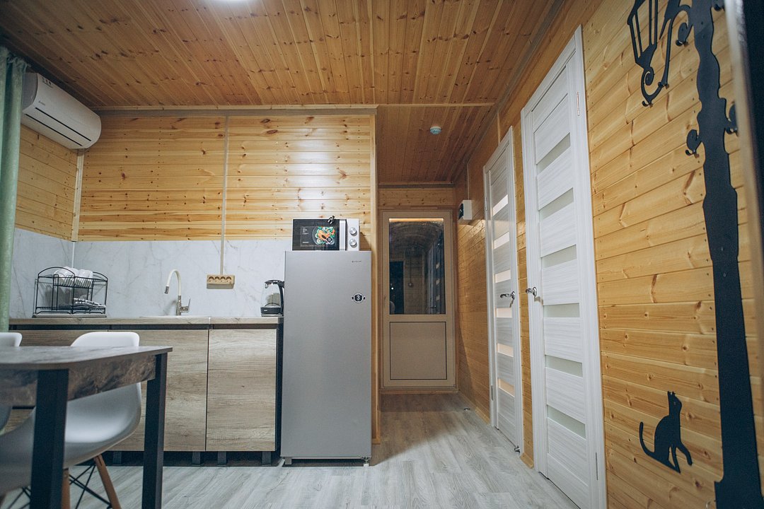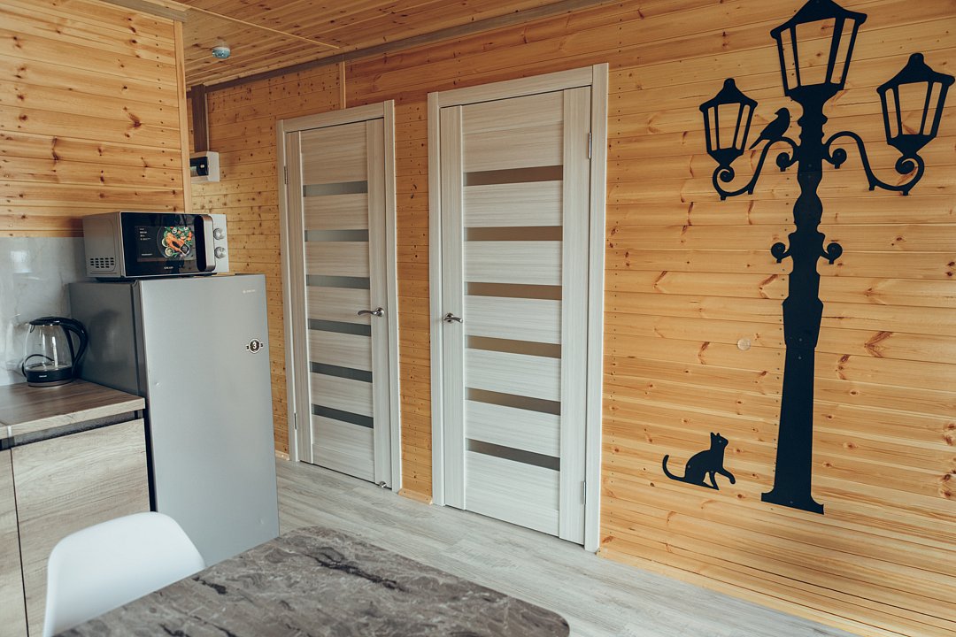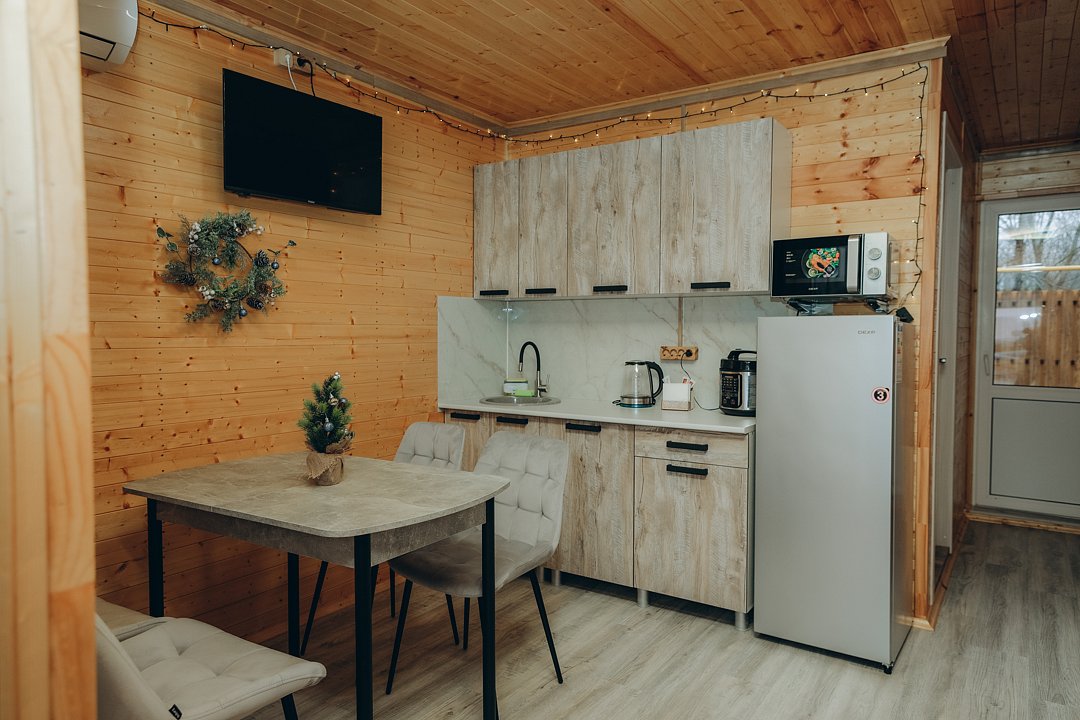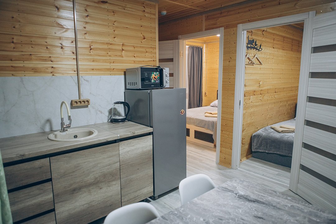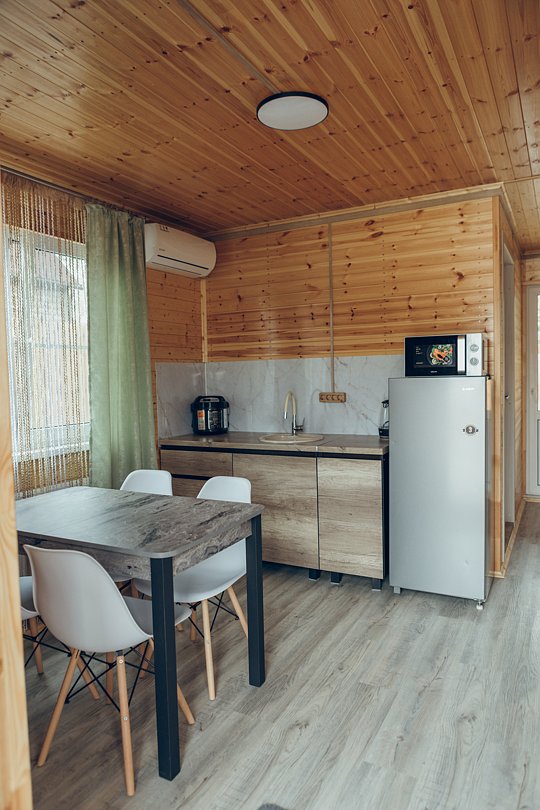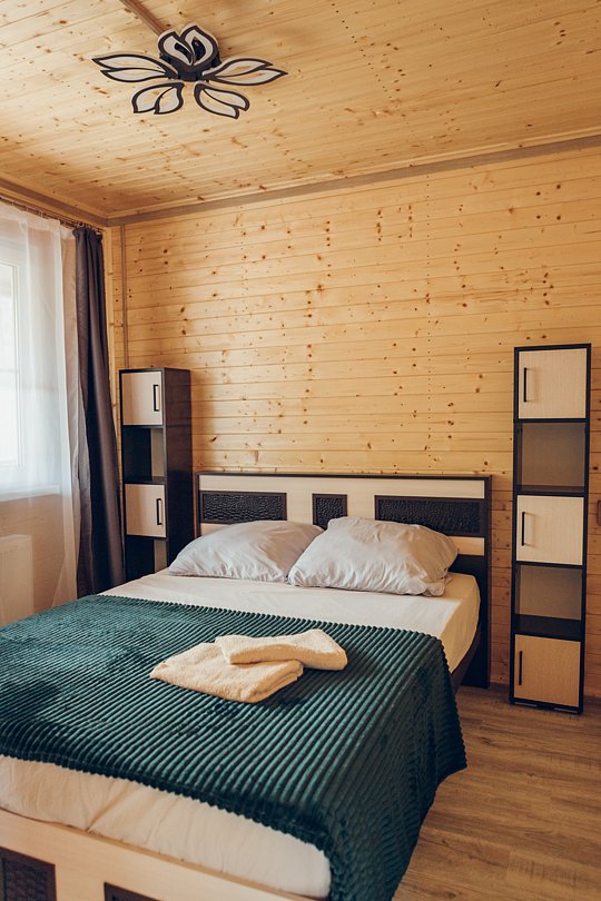 В этом номере вы найдете все, что необходимо для комфортного пребывания: собственная кухонная зона со всем необходимым, ванная комната с душевой кабиной для утреннего бодрящего душа, две уютные спальные комнаты для спокойного отдыха, и, конечно же, задняя терраса с мангальной зоной для приятного времяпрепровождения на свежем воздухе.