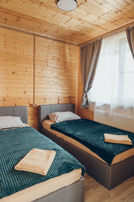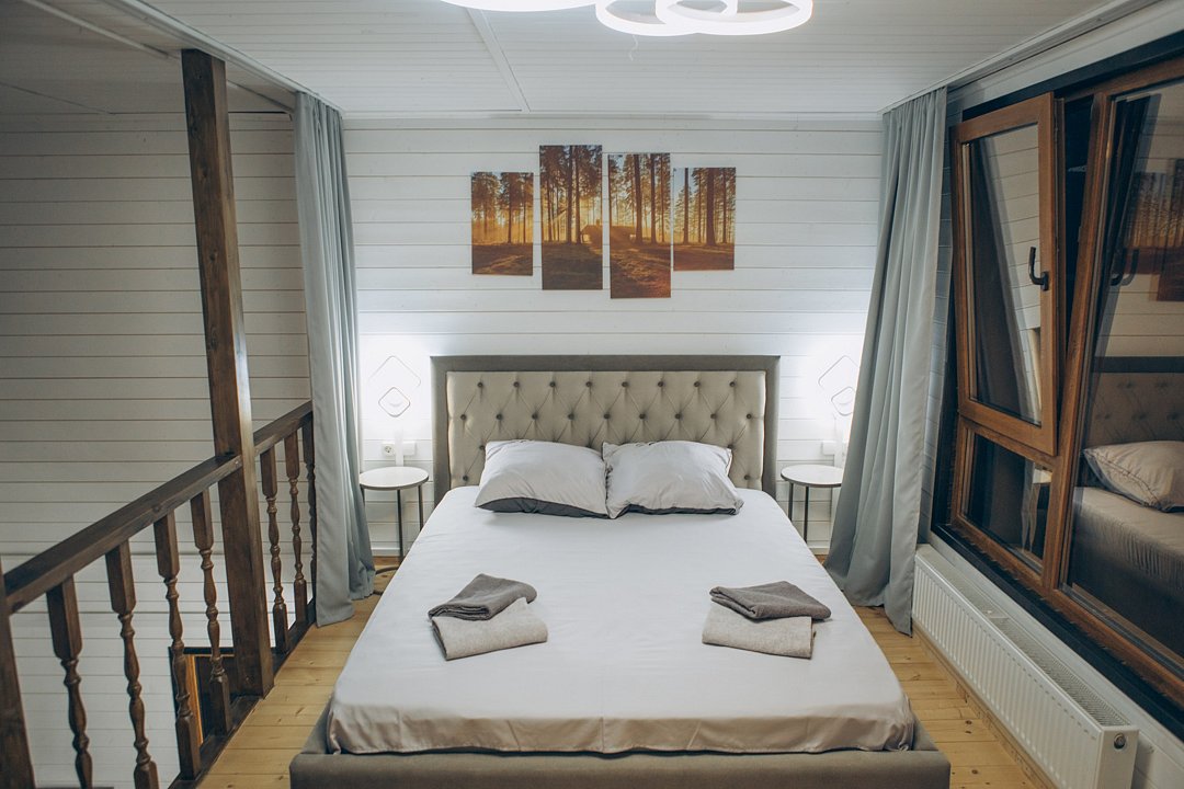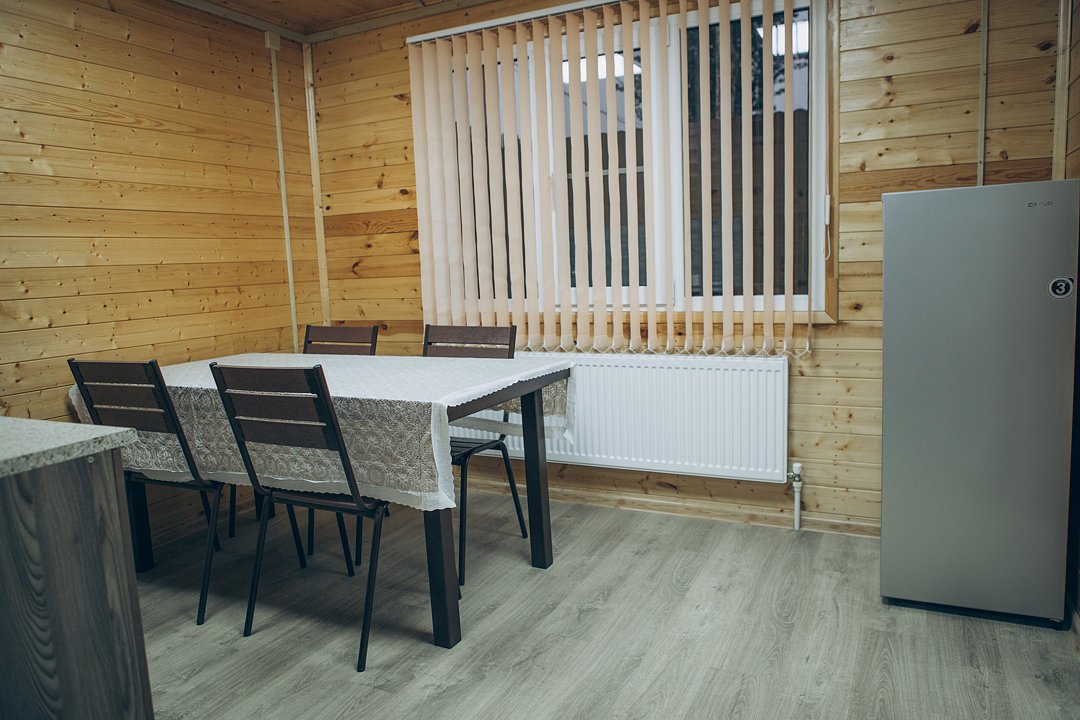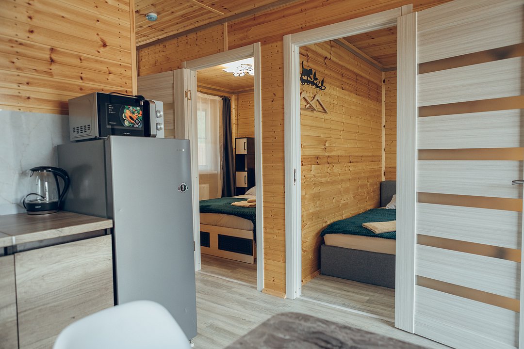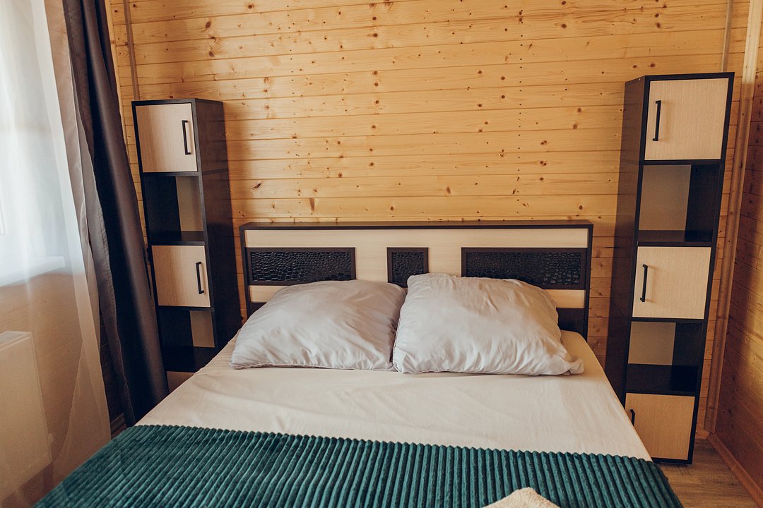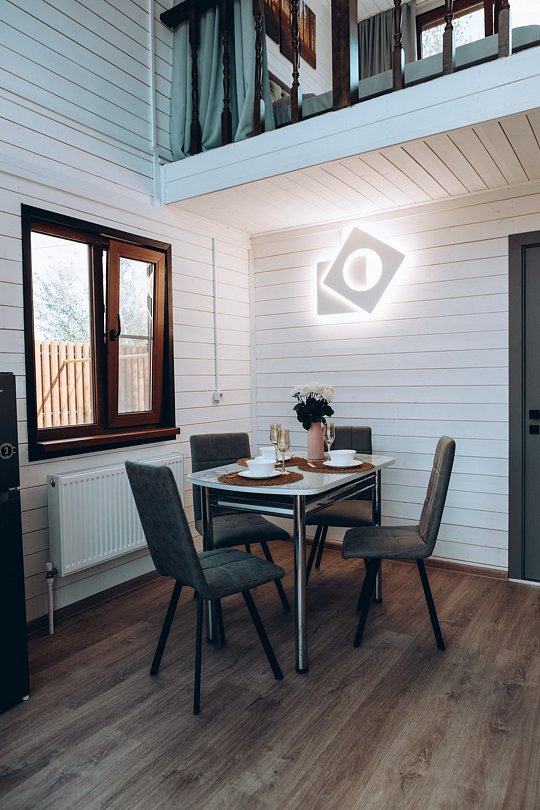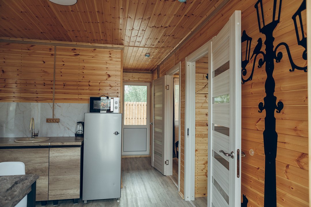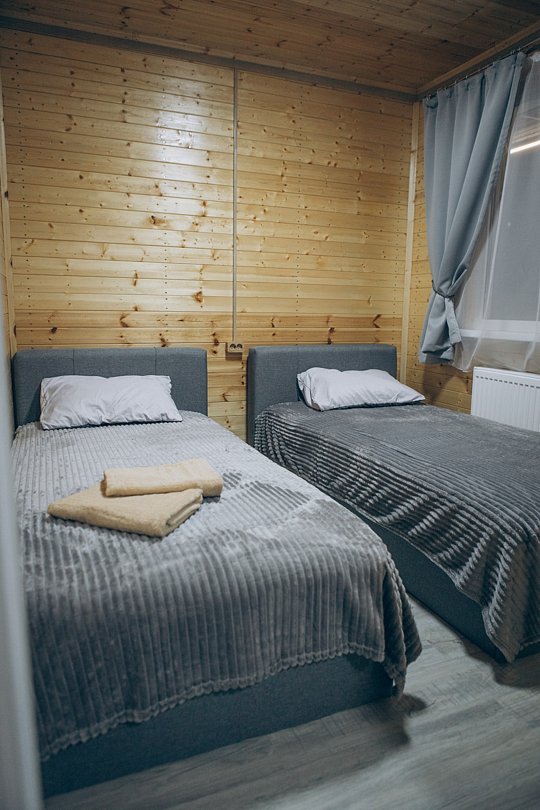 В этом номере вы найдете все, что необходимо для комфортного пребывания: собственная кухонная зона со всем необходимым, ванная комната с душевой кабиной для утреннего бодрящего душа, две уютные спальные комнаты для спокойного отдыха, и, конечно же, задняя терраса с мангальной зоной для приятного времяпрепровождения на свежем воздухе.