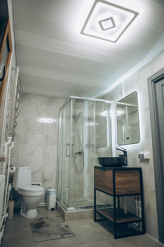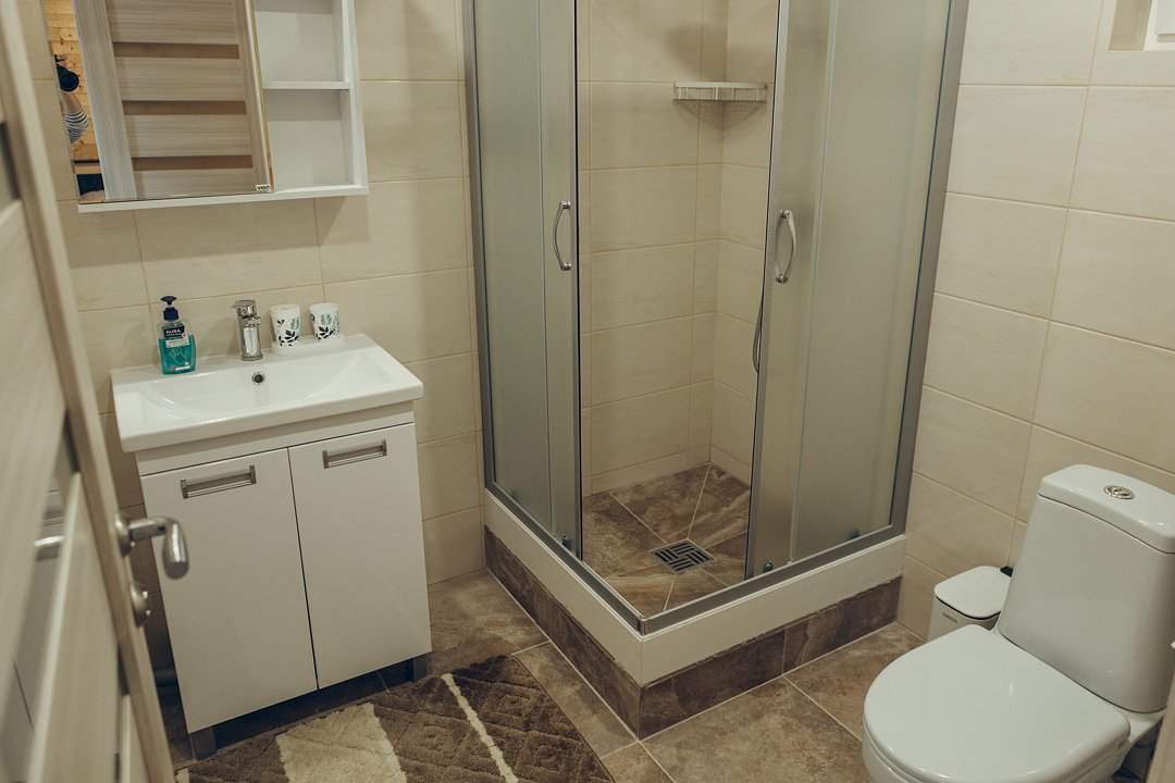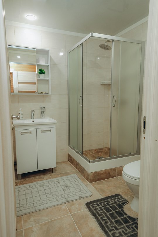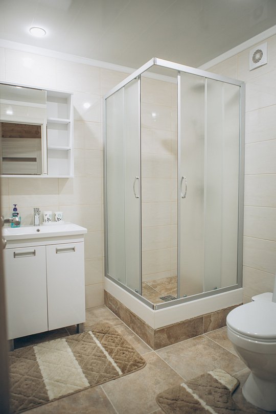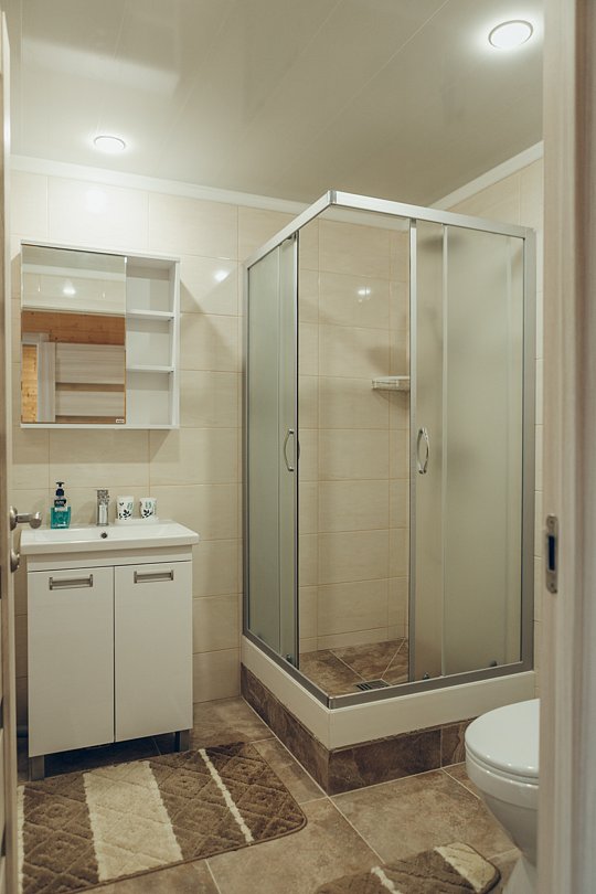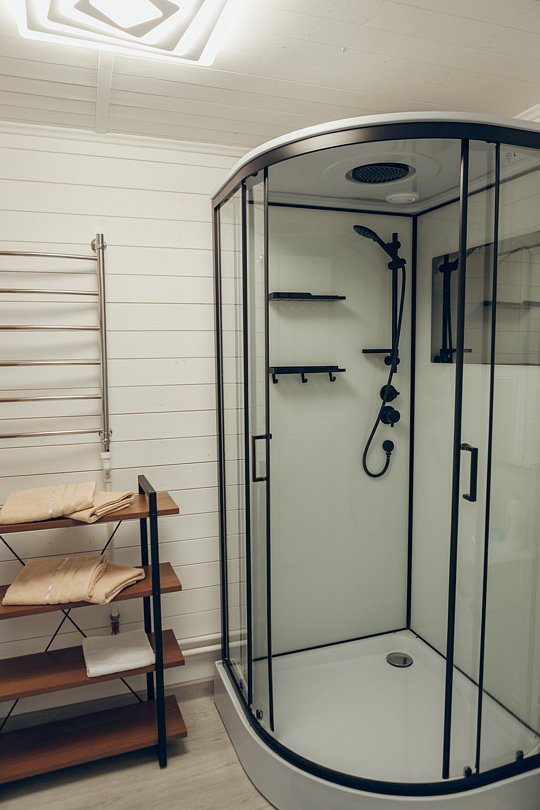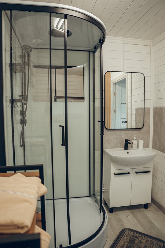 А в ванной комнате вас ждет приятный сюрприз — современная душевая кабина, где вы сможете расслабиться после долгого дня и насладиться утренним душем.