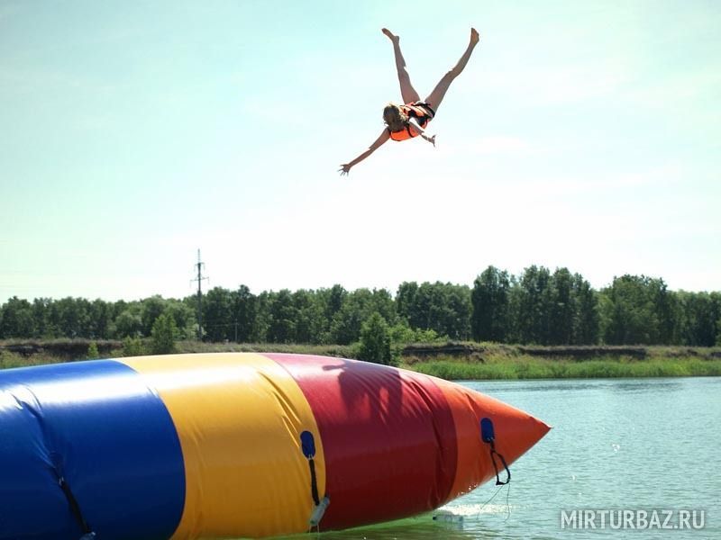 Аттракцион блоб предназначен для развлечения на воде и представляет собой специальную надувную конструкцию, которая позволяет катапультировать человека на высоту до 5 метров с помощью импульсного перемещения воздуха внутри аттракциона.