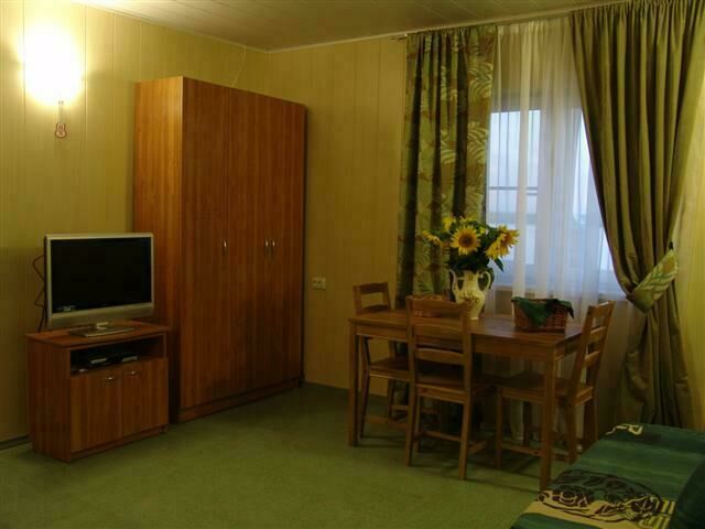 Телевизор, микроволновая печь, электрочайник, холодильник, сауна и отдельная ванная комната.