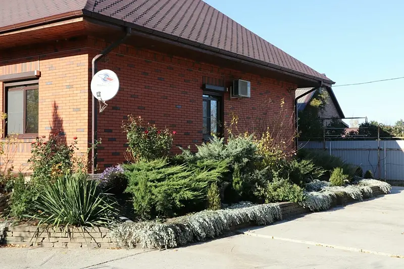 В стороне, под лучами солнца, раскинулся виноградник и плодовый сад, обещающие богатый урожай. Эта гармония природы, баланс цветов и форм делают загородный дом уникальным и умиротворяющим местом.