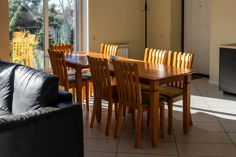 Особое внимание уделено созданию уникального кулинарного пространства. Просторная кухня оснащена современной техникой, включая духовой шкаф, плиту, микроволновую печь и холодильник, а также полным набором посуды и приборов. Гости могут насладиться приготовлением блюд как на оборудованной барбекю-зоне на свежем воздухе, так и в уютной обеденной зоне внутри дома.