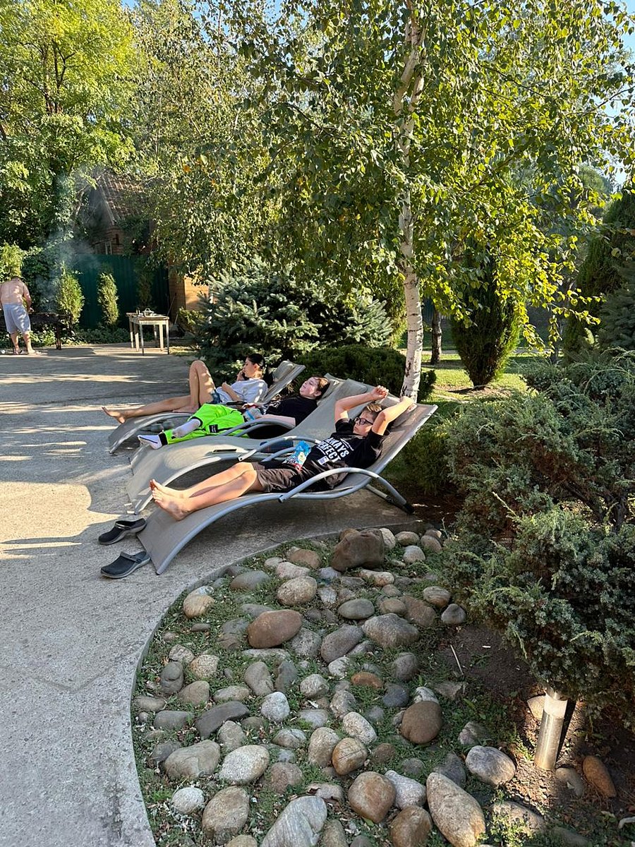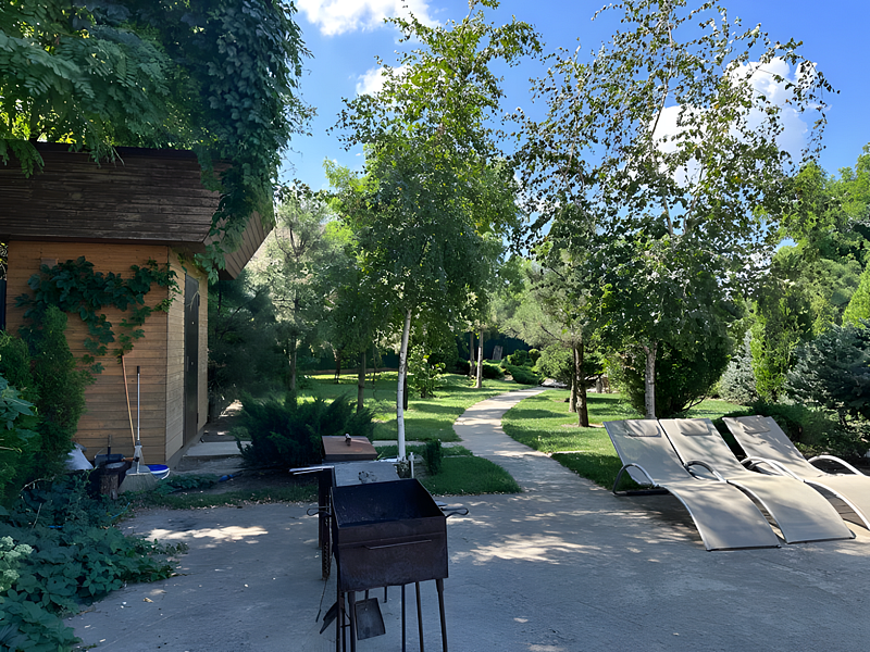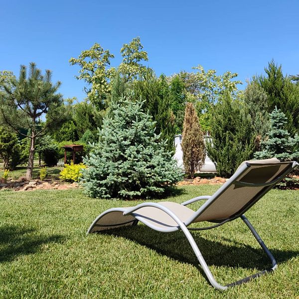 Тип бассейна: открытый бассейн, каркасный бассейнРядом с бассейном: шезлонгиПрямо за пышными кронами сосен, елей и кипарисов укрылся уютный каркасный бассейн, приглашая гостей насладиться освежающей водой и солнечными ваннами на удобных шезлонгах. Это идеальное место для полного релакса вдали от городской суеты, где можно забыть обо всём, наслаждаясь гармонией природы и умиротворяющей атмосферой.