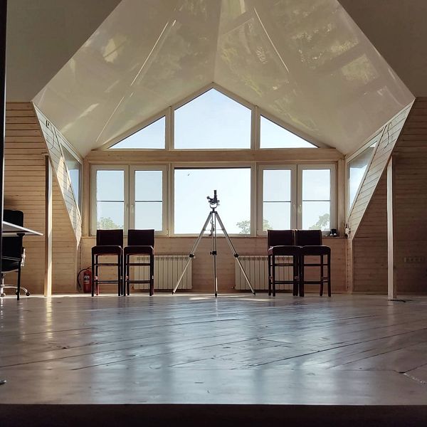 Неповторимым украшением загородного дома становится специально отведенная на втором этаже зона для любителей астрономии. Когда солнце скрывается за горизонтом, телескоп словно приглашает вас в увлекательное созерцание звездных миров.