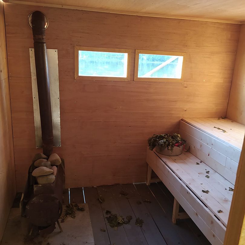 Плот на 8 человека, 4 двухместные палатки с матрасами, подиум под каждой палаткой, умывальник и зеркало в бане, зона мангала и зона кухни со всей необходимой посудой, площадь 72м2-нижняя палуба, 24м2-второй этаж, баня, шезлонги, солнечные батареи, плот накрыт тентом