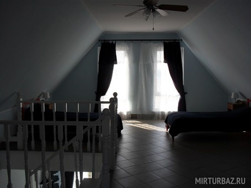 Двухэтажный коттедж. На первом этаже располагается гостиная с раскладным, двухспальным диваном и креслами, мини столовой (стол, стулья, шкаф для посуды, чайник). Санузел совмещенный с душем. На втором этаже 4 односпальные кровати, прикроватные тумбы. Сплит система. Коттедж рассчитан на проживание от 4-х человек, с возможностью предоставления дополнительных мест до 8 человек. Крытая терасса.