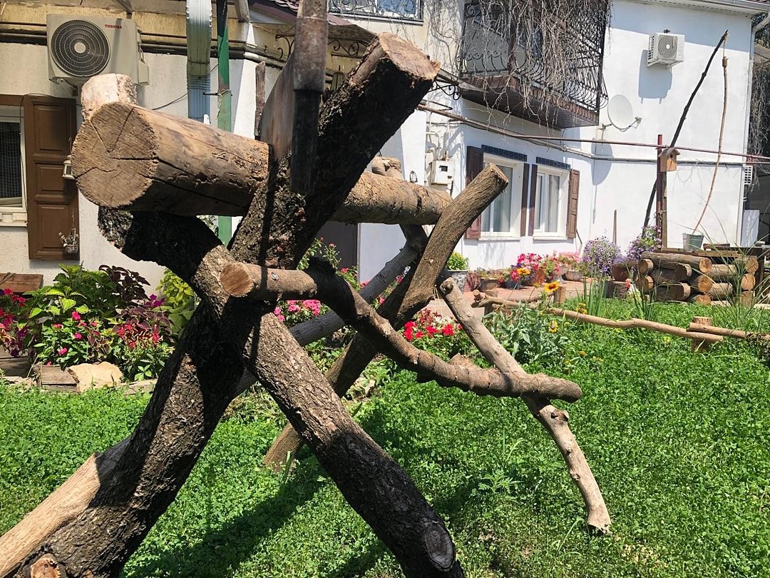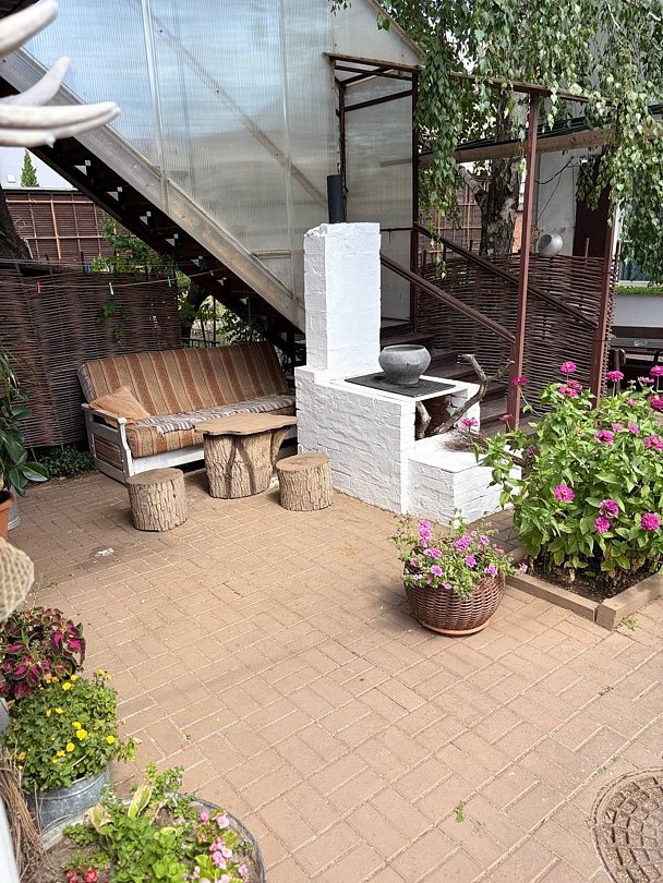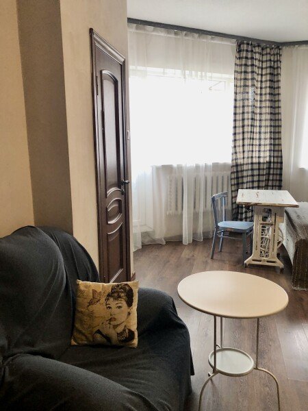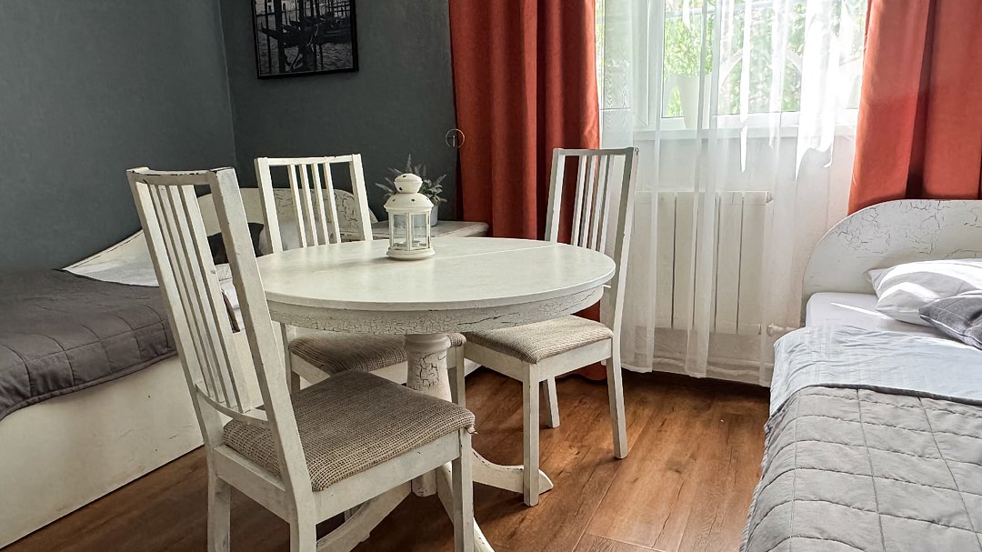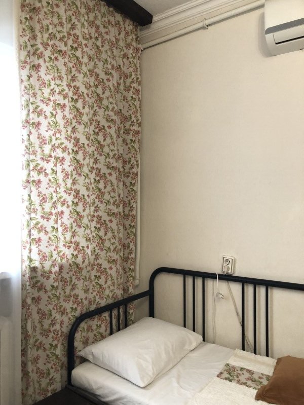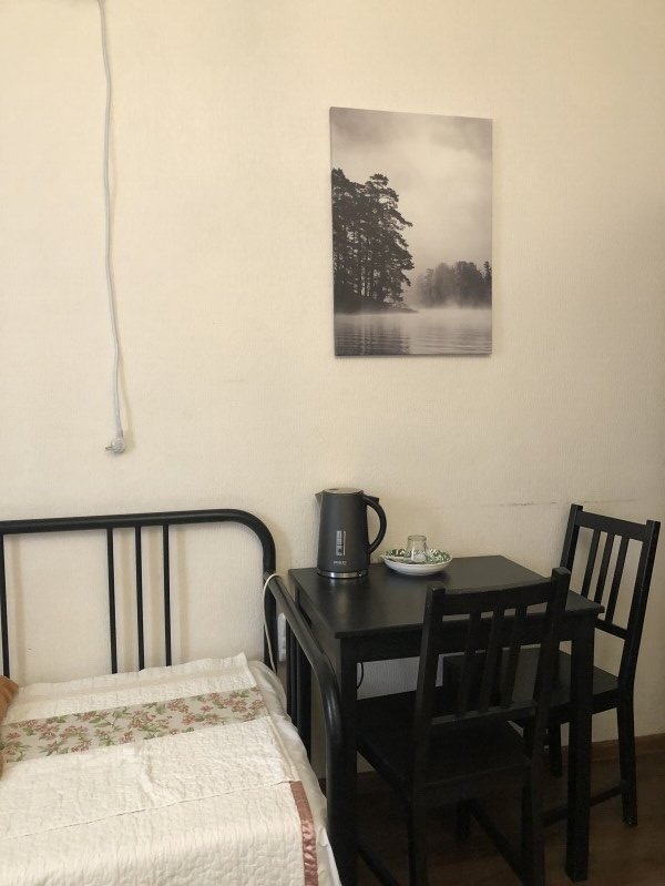 Уютный номер в стиле лофт, с выходом на балкон и видом на прекрасную цветущую березу.
