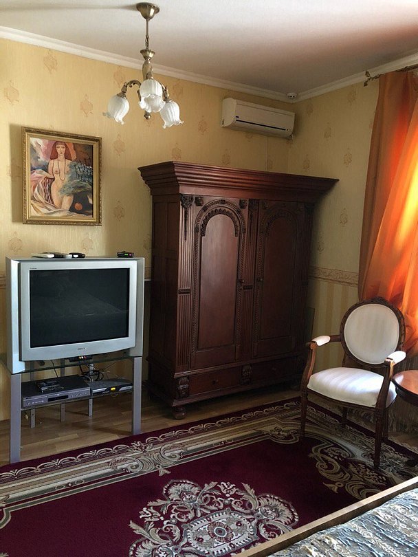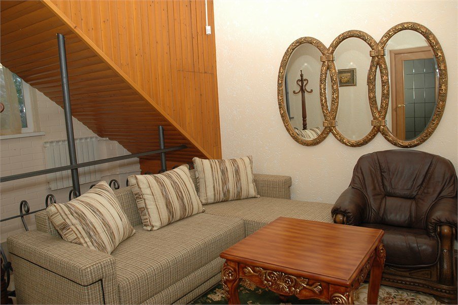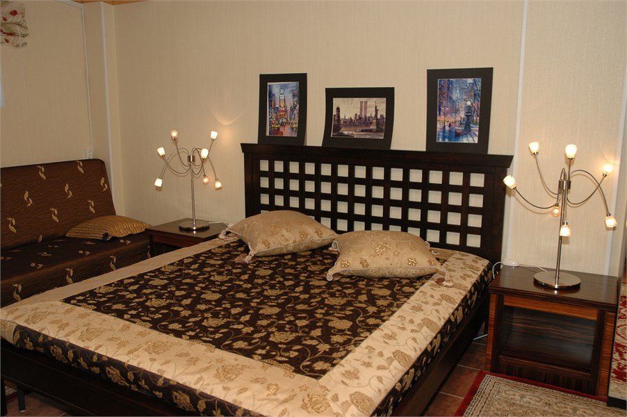 Двухместная комната с двуспальной кроватью и диваном, который раскладывается. Допускается вместимость до 3-4 человек, кроме №2 и №10 (в номере 1 двуспальная кровать).