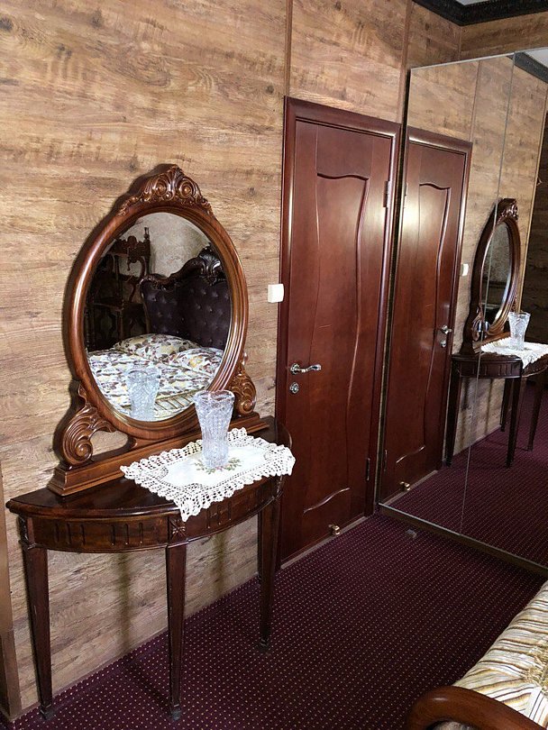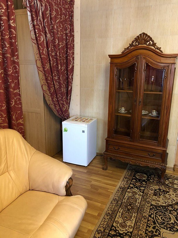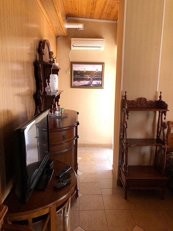 В №9 есть собственный отдельный вход, микроволновка, эл.чайник, шкаф-буфет с необходимым набором столовых принадлежностей и посудой. Также №9 оснащен теплыми полами в зоне гостиной и ванной комнаты.