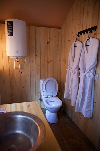 Внутри домиков стоят обогреватели, вы можете выставить комфортную температуру. Во всех тент-хаусах также есть сплит-системы. В холодное время года в каждом тент-хаусе есть электропростыни.