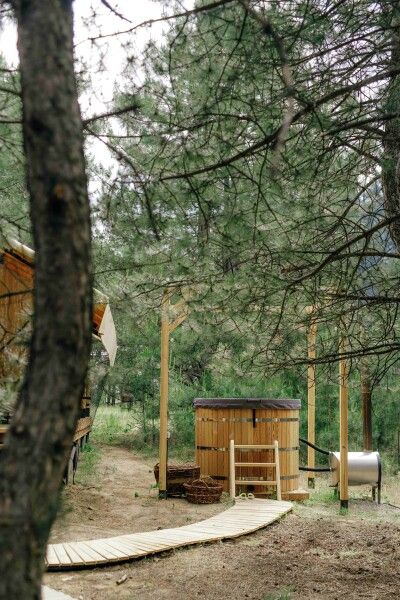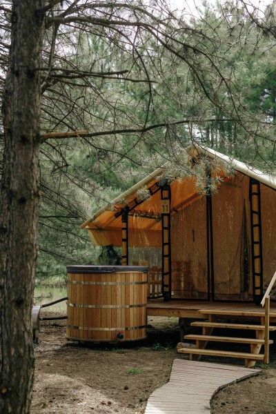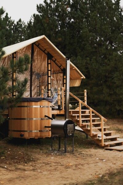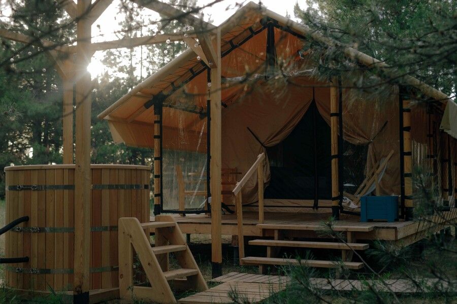 Тент-хаус с купелью в сосновом лесу