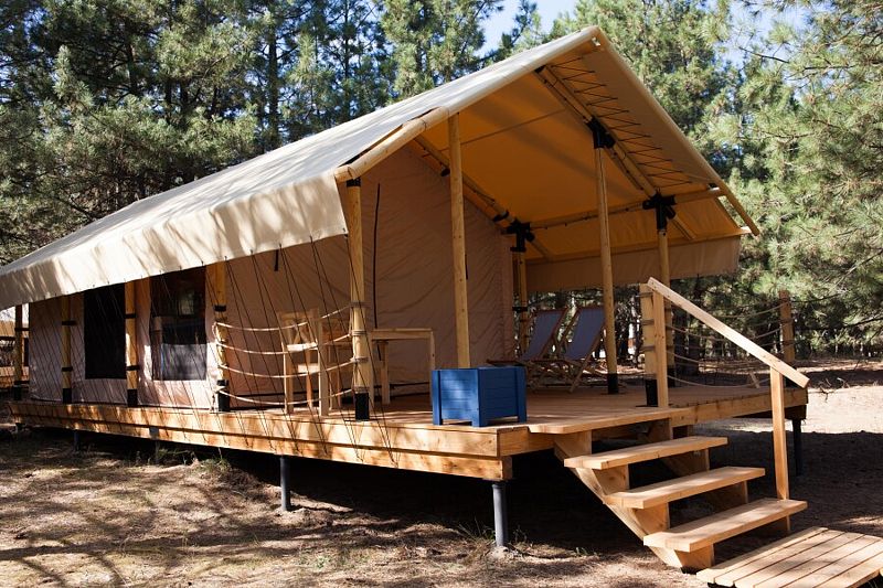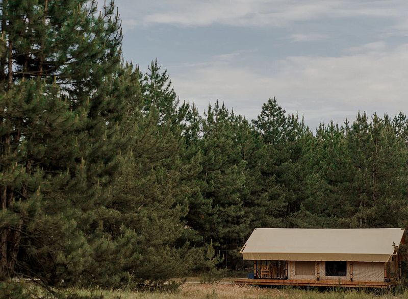 Тент-хаус в сосновом лесу