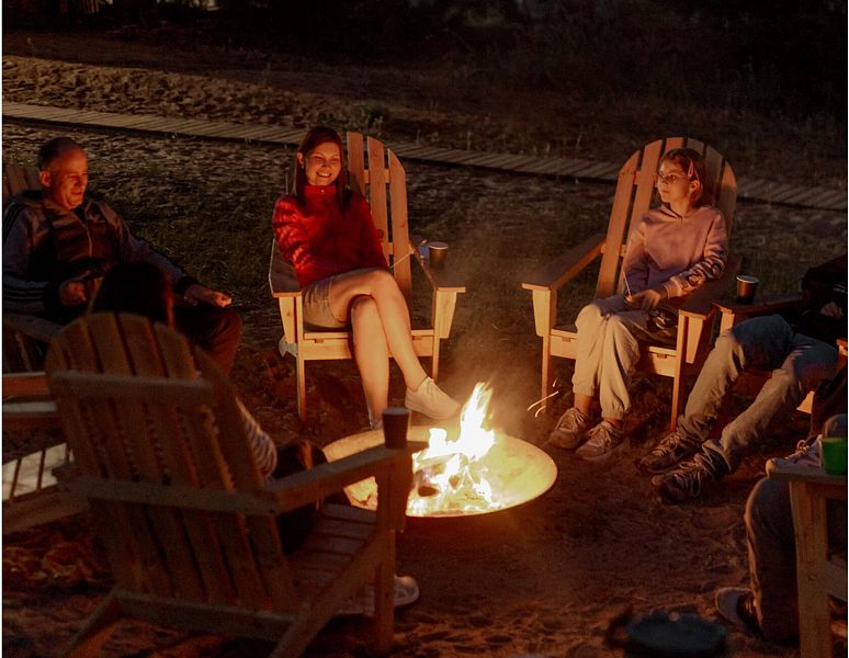 Разместитесь в комфорте на уютной костровой зоне, где вы можете пожарить зефир на шпажках и устроить уютный вечер с песнями под гитару.