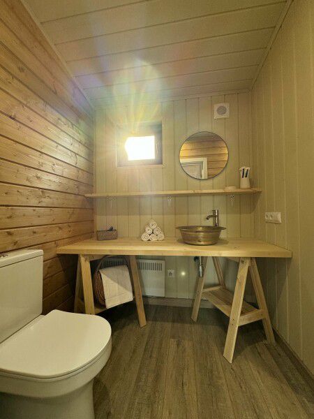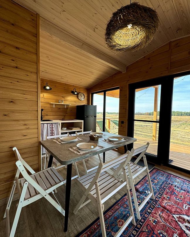 Из минусов : комары, муравьи (везде в домике ) , ночью в домике прохладно , (нужно заранее включить сплит на тепло.). Если вы чутко спите будьте готовы проснутся с первыми птицами и т.д.