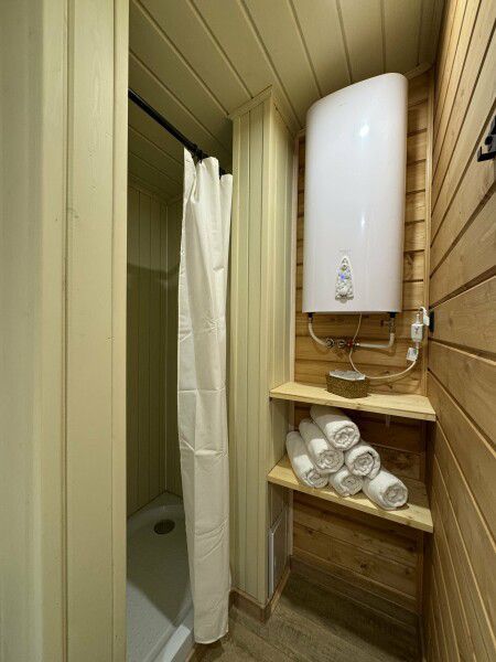 Самые лучшие домики это те которые дальше всего от кафе и с купелью . Купель эта такая большая бочка , которую в которой подогревают воду до нужной температуры. У нас был домик самый близкий к лесу с прекрасный видом на реку (№4) . Купель понравилась , стоит того, чтобы чуть переплатить.