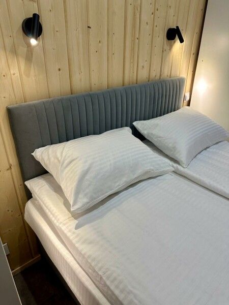 Отдельная комната с двуспальной кроватью (2 человека), гостиная совмещенная с мансардой для размещения двух человек. В гостиной на диване (одно доп. место 135*190).