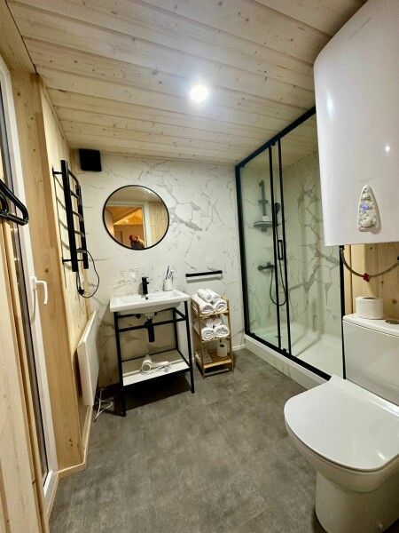 Данный домик без купели, но возможно заранее забронировать баню на территории (в бане есть холодная и горячая купели, бронируется по предоплате).