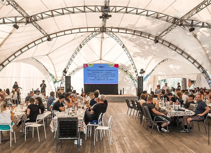 Площадка в виде купола отлично подойдет для празднования торжественных мероприятий, а также для проведения корпоративов и конференций. Вместимость шатра — 150 человек.