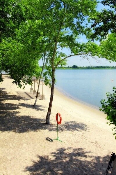 Прекрасно оборудованный песчаный пляж со всем необходимым инвентарем и инфраструктура к Вашим услугам. На сертифицированном пляже всегда дежурит спасатель. Дно реки проверенно водолазами и засыпано песком. На пляже душевые кабинки, раздевалки, туалет, солярий.