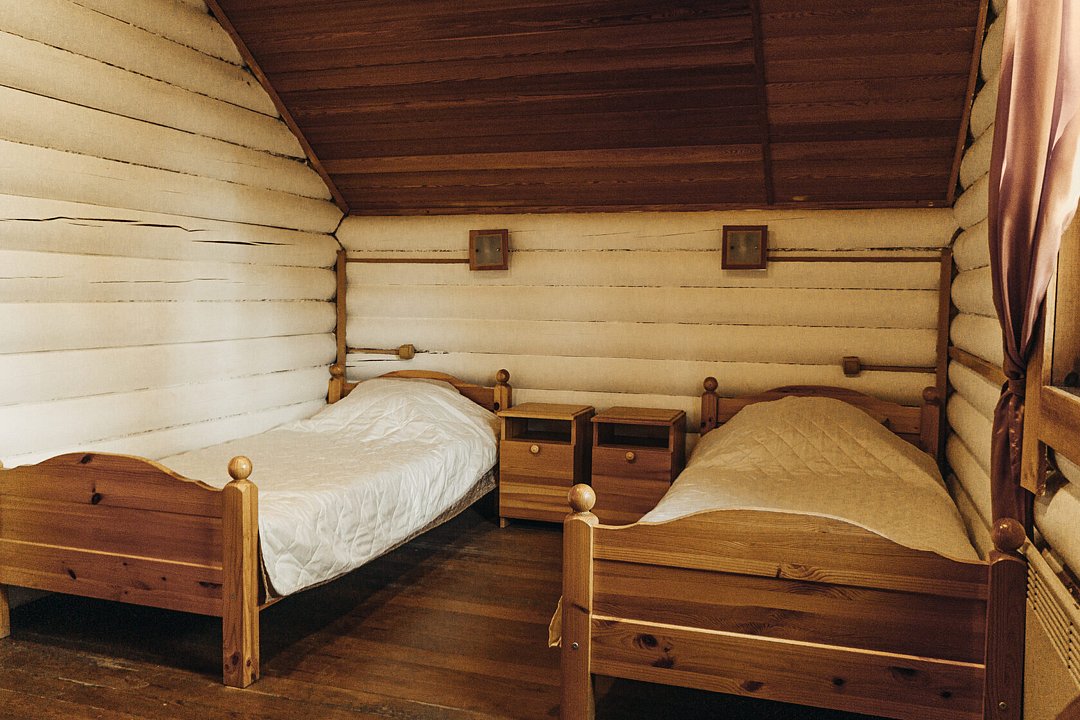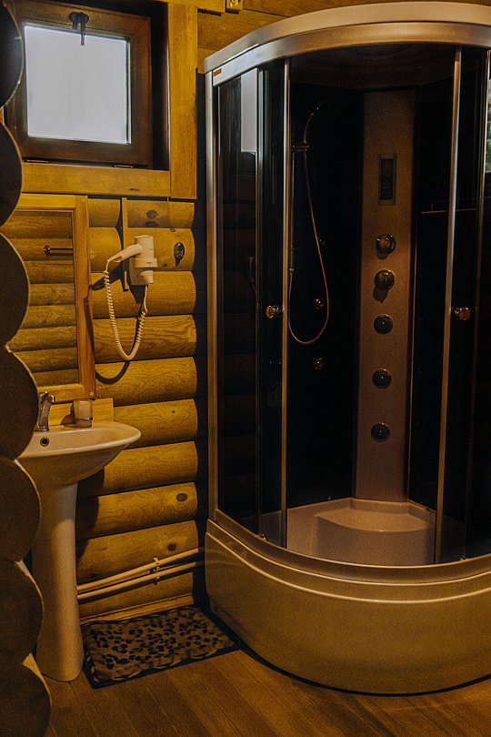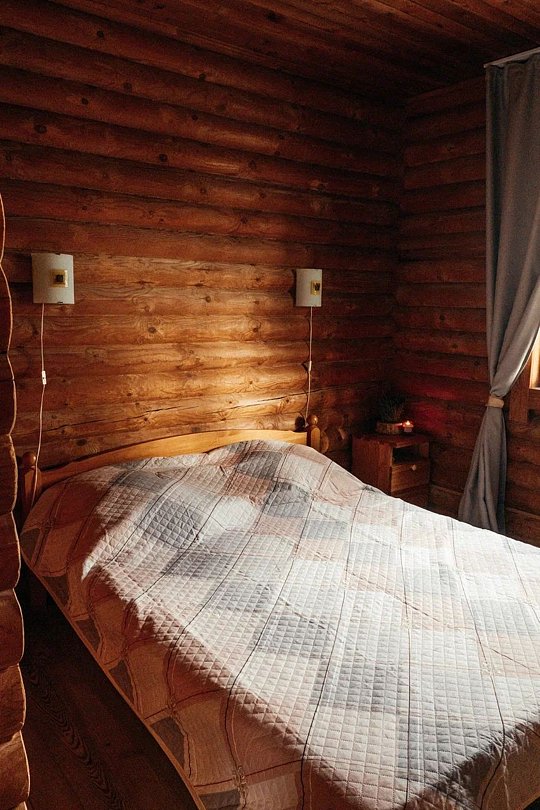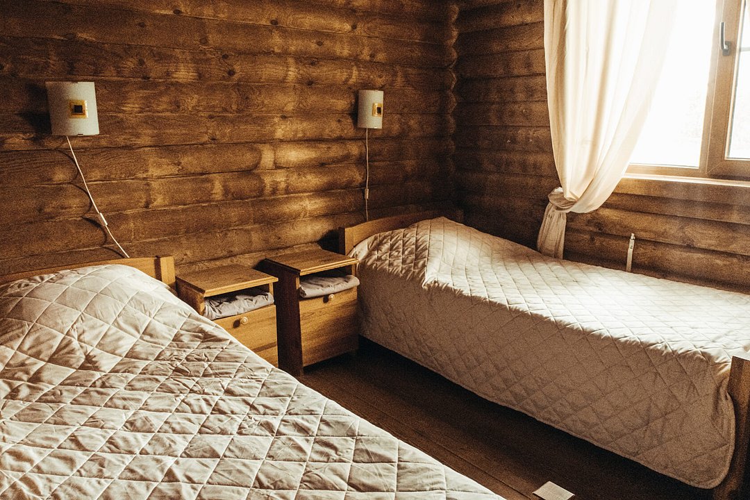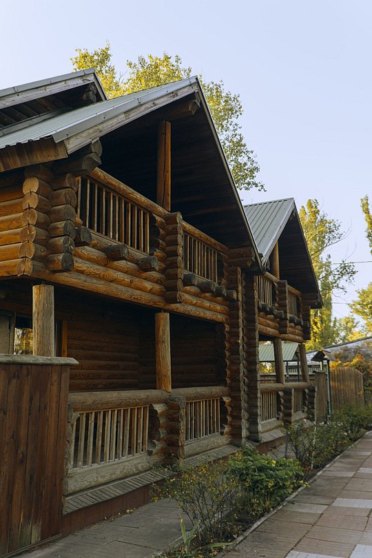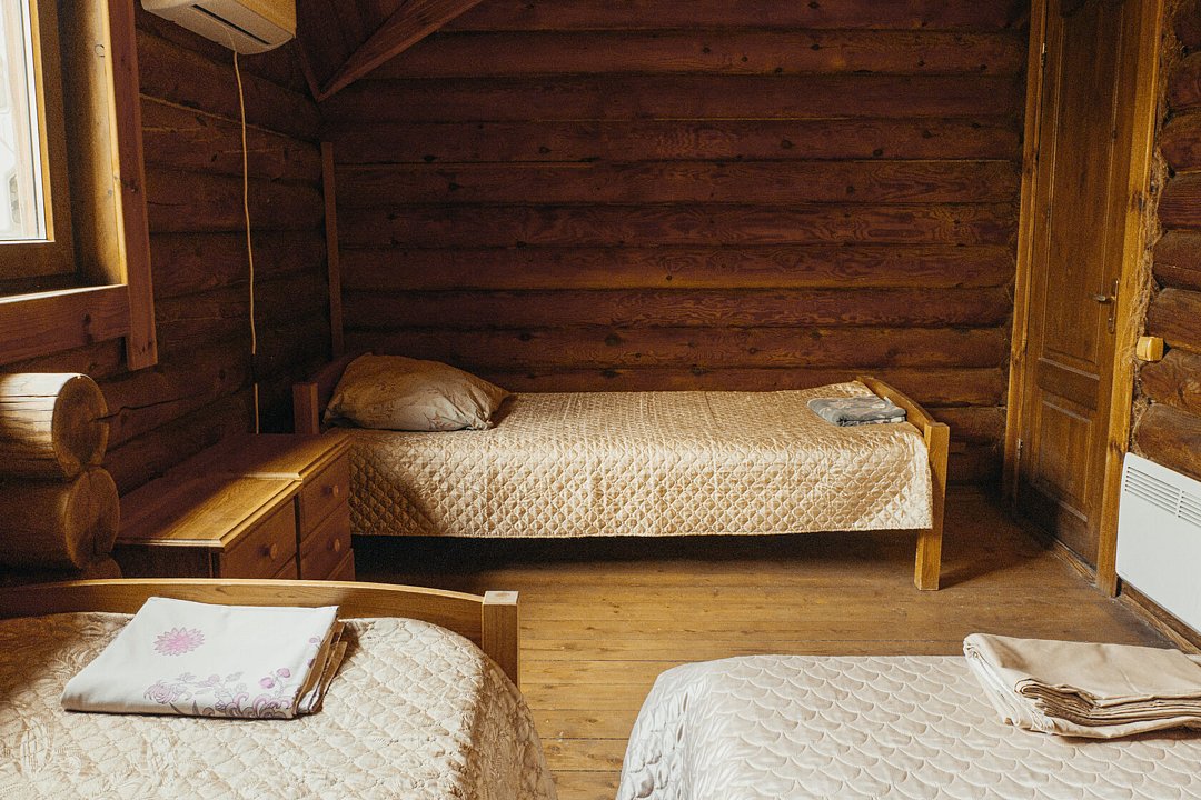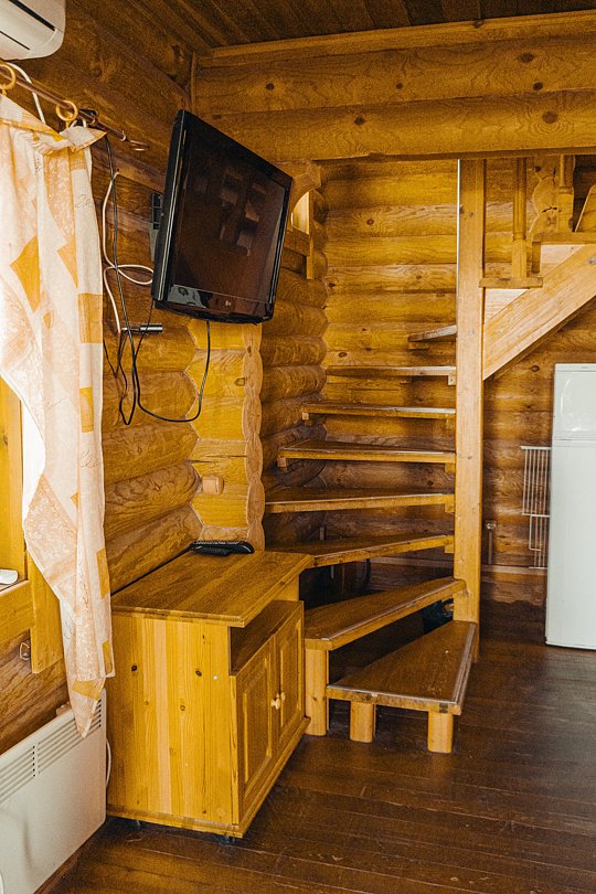 Бревенчатые домики сложены из иркутской сосны. Свежий запах натуральной древесины, который царит в прохладных и уютных помещениях, создает прекрасное настроение.