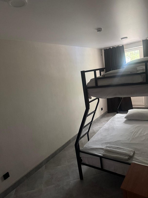2х-комнатные номера 35 м2 (комнаты 14+13 м2), из каждой комнаты есть выход на балкон. В комнатах 2 односпальные кровати (90*200 см), + 1 двухъярусная кровать (90+120*190 см), телевизор, небольшой холодильник, стул, шкаф, сплит-система, зимой отопление. Совмещенный санузел (унитаз, раковина, душ, зеркало). 4-х местный.