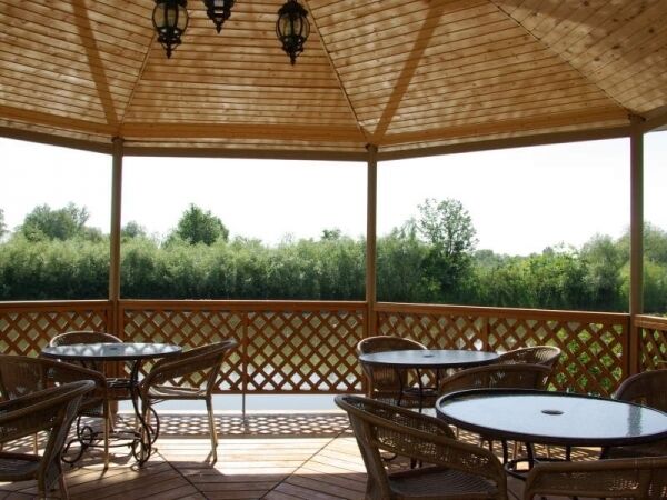 Территория базы отдыха имеет несколько зон. В одной расположена шикарная гостиница с выходом к воде, а с другой стороны — удивительное озеро с кувшинками. Здесь можно отдохнуть в беседке на воде или на песчаном пляже, взять на прокат лодку и исследовать акваторию озера или порыбачить, поплавать в бассейне, поиграть в бильярд или мини-гольф. Самый искушенный гость будет приятно удивлен сочетанием изысканного интерьера и дорогой мебели в гостинице, а также уютом и комфортом апартаментов.