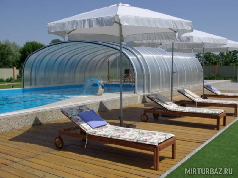 На территории отеля расположен плавательный бассейн длиной 25 метров, который можно использовать в любое время года благодаря раздвижному навесу и подогреву воды. Одна из стенок оборудована гидромассажными системами и СПА-зоной, которые обеспечивают массажный и лечебный эффект, а так же доставляют массу удовольствия.