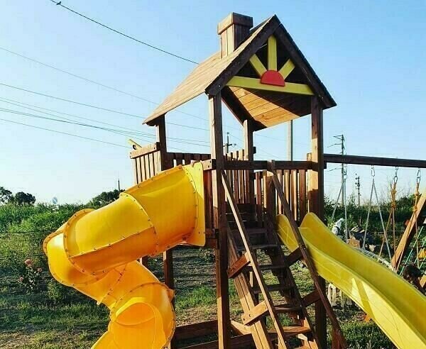 Для маленьких детей есть детская площадка с горками и качелями.