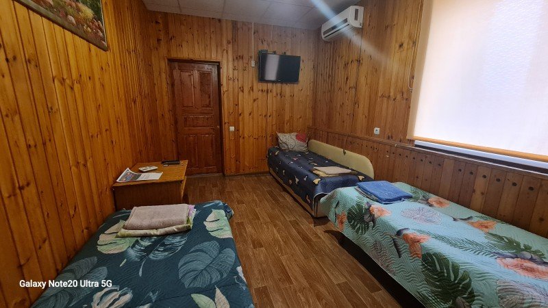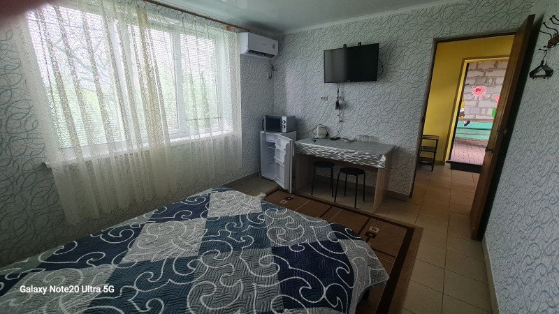 Дом рассчитан на проживание в нем от 6 до 8 человек. Здесь есть 6 отдельных кроватей и много свободного места, где можно поставить дополнительную раскладушку и обустроить место для ребенка. В каждой комнате имеется телевизор, холодильник, микроволновка, электрочайник. Есть кондиционер, который обеспечит в помещении комфортный климат даже в самую жаркую погоду. В доме всегда чисто и прибрано, гостям предоставляется свежее постельное белье и полотенца.