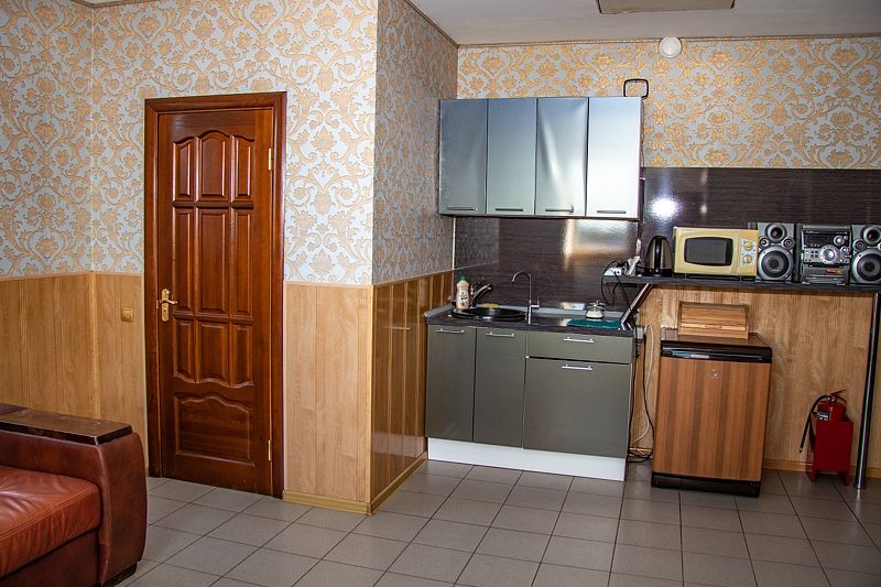 На территории работает мангал. На общей кухне вы найдете: набор посуды, электрочайник, столовые приборы, микроволновую печь, холодильник, духовой шкаф. В 4 км расположен ресторан «Меню» и «Сад онлайн».