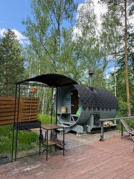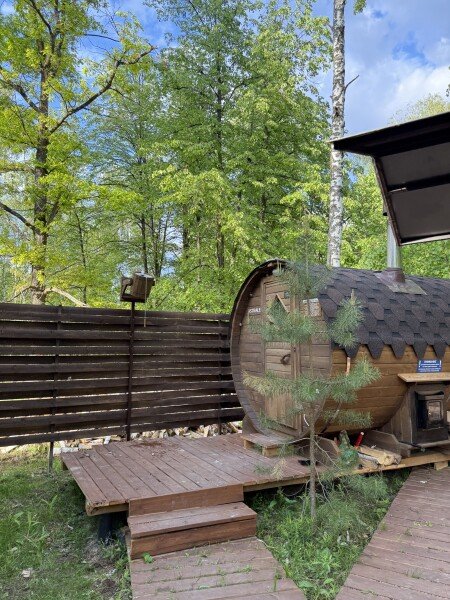 У домика располагается сибирский чан, которым сможете воспользоваться только Вы, за дополнительную плату — 5000 ₽. Чан топится ко времени, далее поддерживается температура самостоятельно.
