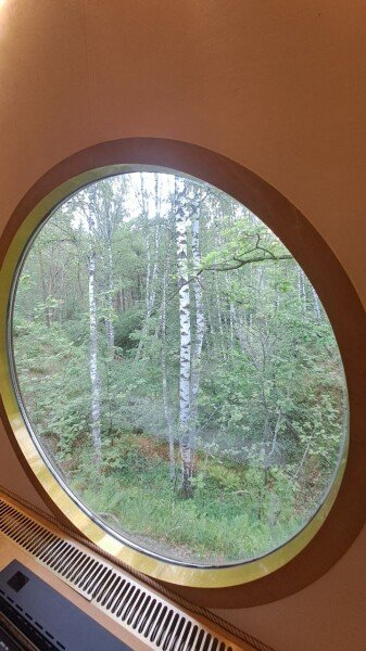 Это тот самый домик из Pinterest, в котором вы мечтали пожить всю свою жизнь. Стоит на высоком берегу, будто паря над землёй, с приватной верандой, скрытой от посторонних глаз. Три круглых окна, будто глаза сказочного персонажа, эко-фэнтези интерьер, парящая кровать и камин у панорамного окна.