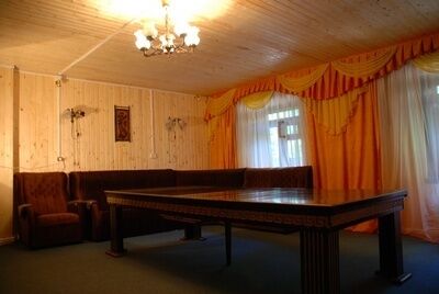 Гостевой дом имеет: кухню, столовую, большой банкетный зал с камином и караоке, сауну и 5 спален.