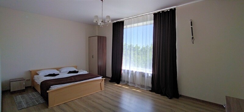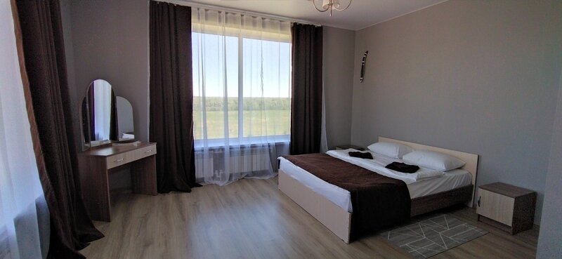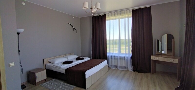 На базе отдыха для проживания есть два варианта размещения. Внутри каждого домика есть все необходимое для комфортного пребывания: кухня с оборудованием, уютные спальни, современные ванные комнаты и просторная гостиная. Таким образом, гости могут чувствовать себя как дома, наслаждаясь природой и удобствами современного жилья одновременно.