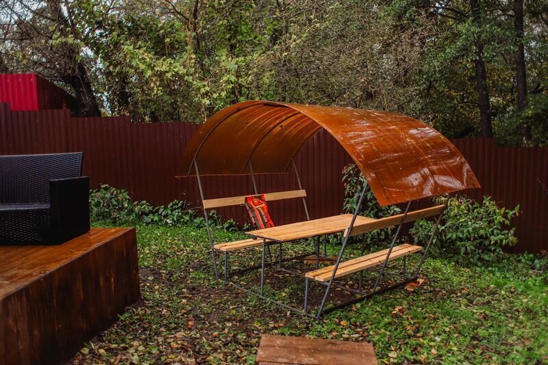 Треугольный эко домик с беседкой в Солотче — 4х4 м, высотой 6 м. Идеально для отдыха на природе рядом с Рязанью.
