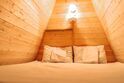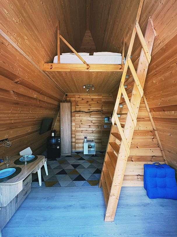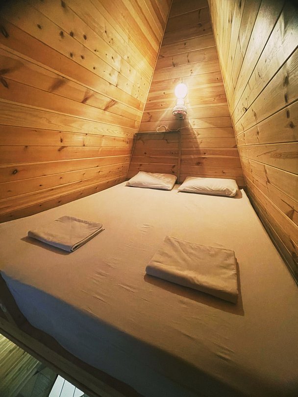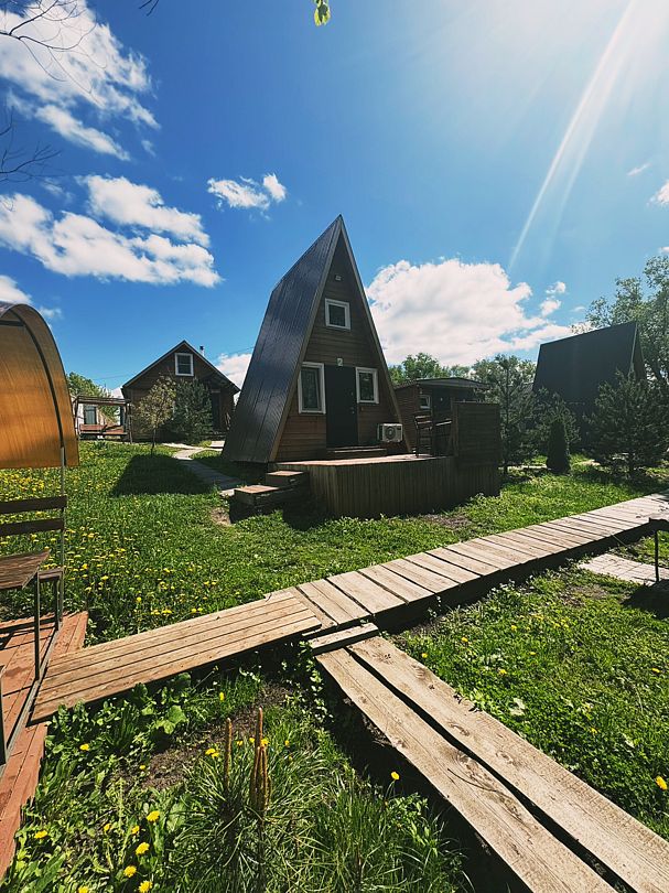 Домики отапливаемые, двухэтажные и выполнены в экологическом стиле A-Frame 4x4. Они изготовлены из высококачественной древесины и имеют высоту 6 метров. Со второго этажа открывается волшебный вид из окна на чудесную природу, столетние деревья и закаты, которые невозможно отвести взгляд.