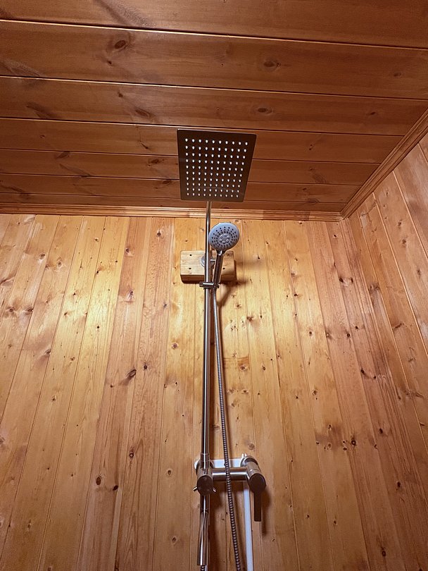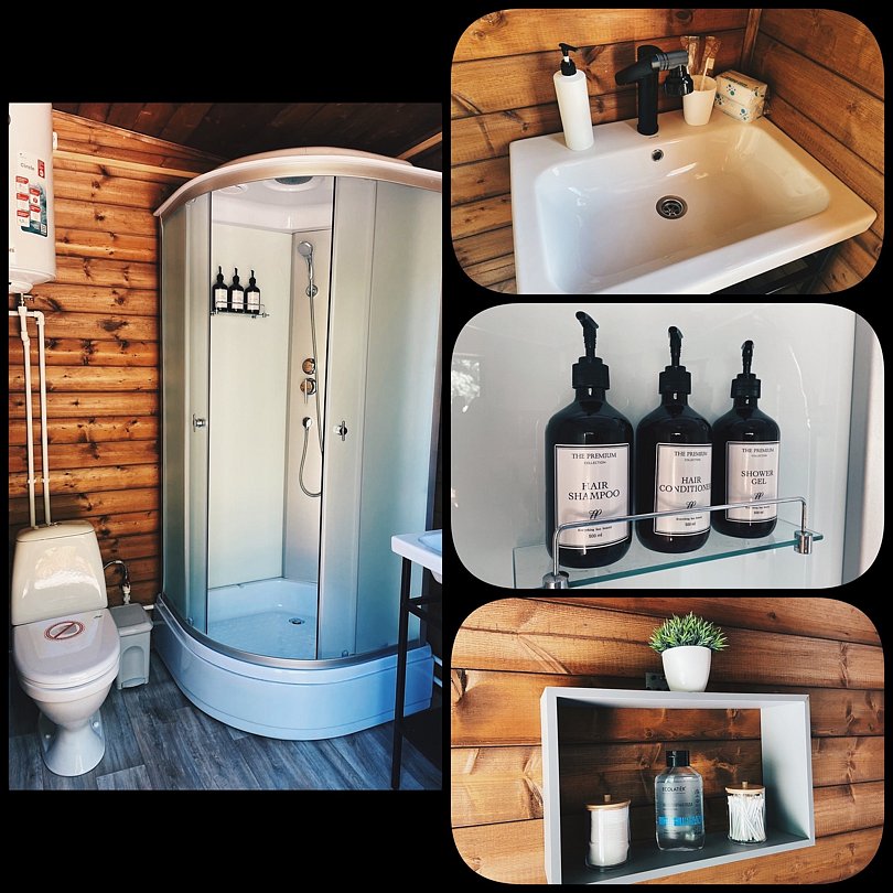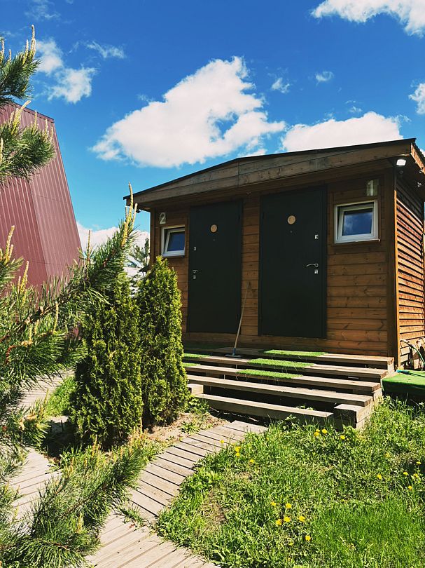Тёплый индивидуальный туалет и душевая всего в 5 метрах от дома — чисто, удобно и современно.