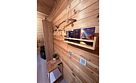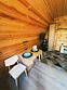 Оборудованный собственный санузел с душем вне домика, фен, предметы личной гигиены ТВ, холодильник, диван, чайник, WI-FI, доп. место - раскладной диван